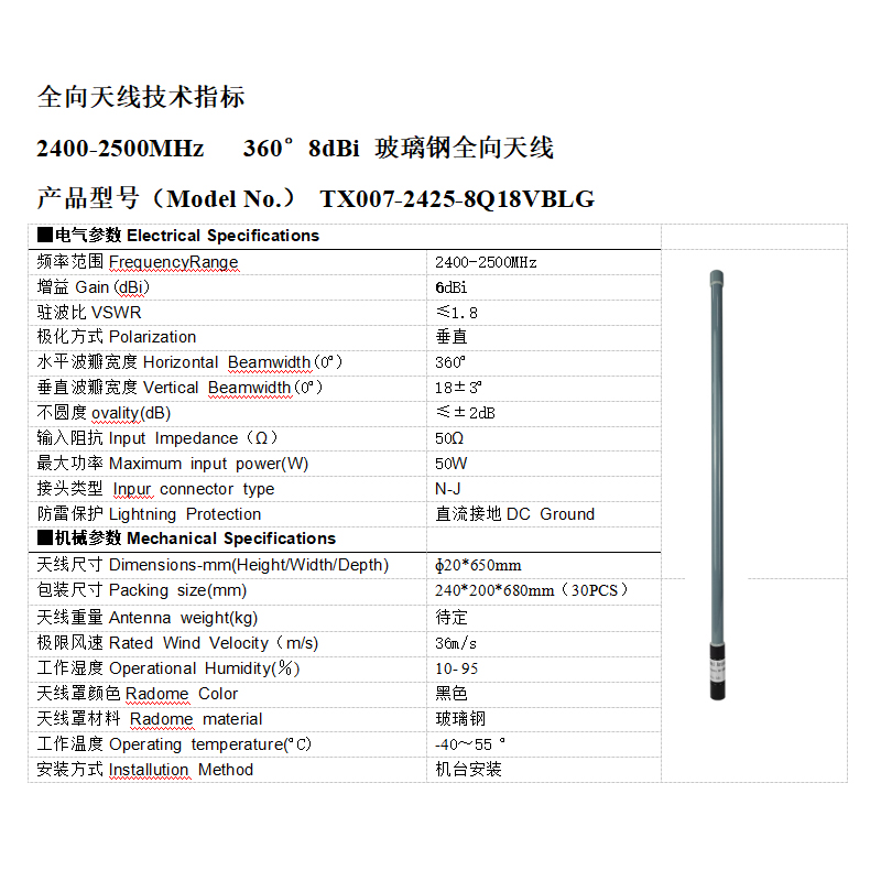 物质头衔:全向破璃窗钢定向全向天线2400-2500MHz背负着式无人化机反制配置 破璃窗钢定向全向天线