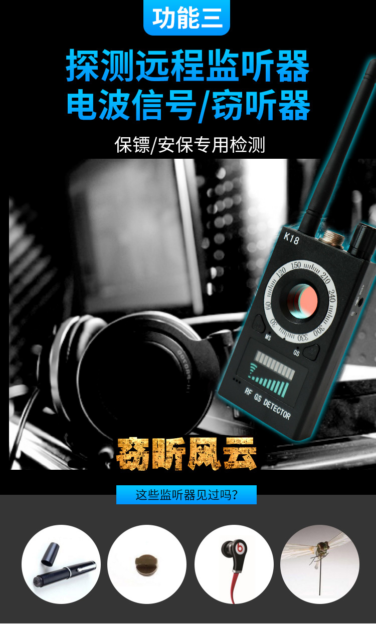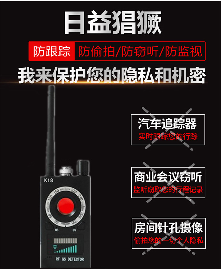 货物荣誉称号:反窃听防关注偷摄验测仪旌旗灯号拍照头汽年wifi定位复印侦测器gps